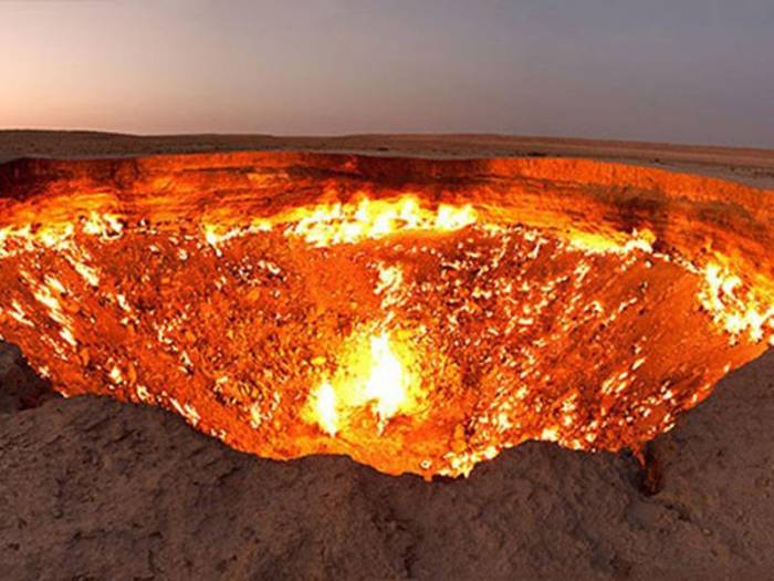 In 1971 Soviet geologists discovered a cavern filled with natural gas. It was set ablaze with the hopes of burning off, but it is still burning today.