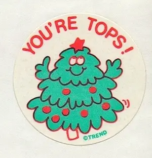 Receiving Christmas-themed Scratch 'n Sniff stickers at school—often just smelling like pine or peppermint, but still a fun little treat: