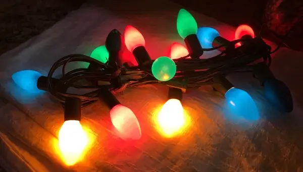 Adorning your Christmas tree with vibrant string lights featuring reflectors on each bulb for that extra dazzling glow: