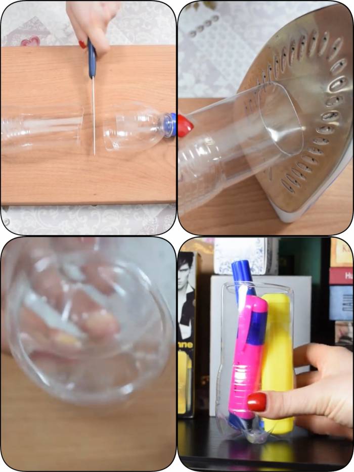Cut a bottle in two pieces and do same as instructed in a picture below. Your decoration piece is ready. You can colour it too!
