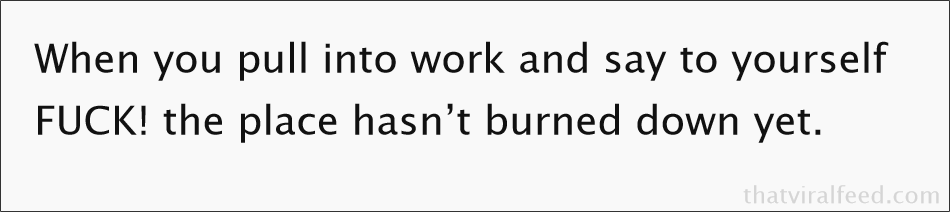 "When you pull into work and say to yourself FUCK! the place hasn’t burned down yet."