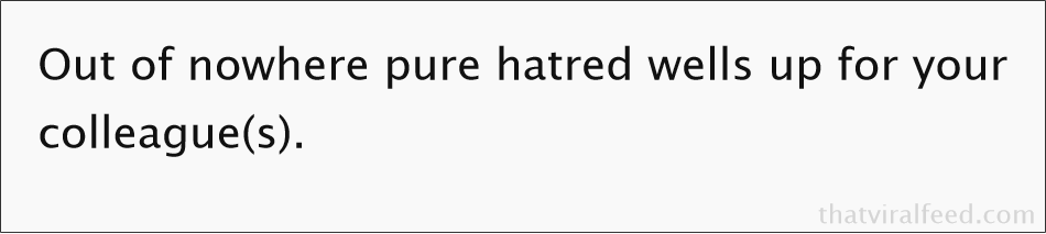 "Out of nowhere pure hatred wells up for your colleague(s)."
