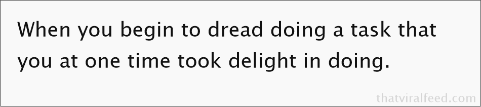 "When you begin to dread doing a task that you at one time took delight in doing."