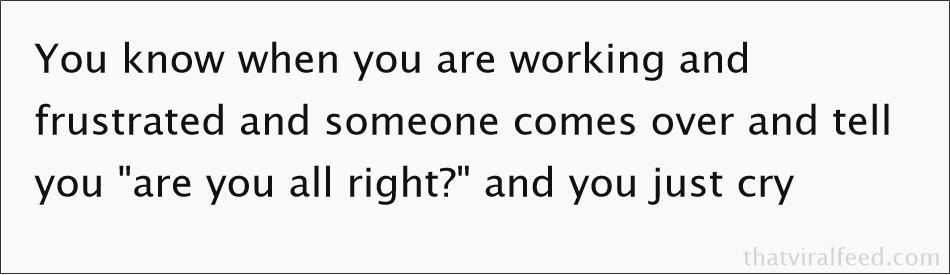 "You know when you are working and frustrated and someone comes over and tell you "are you all right?" and you just cry"