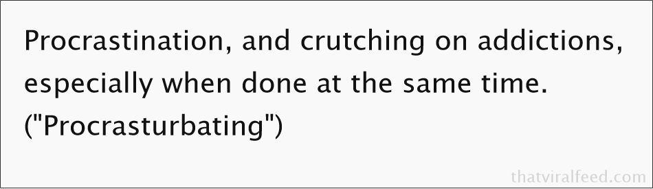 "Procrastination, and crutching on addictions, especially when done at the same time. ("Procrasturbating")"