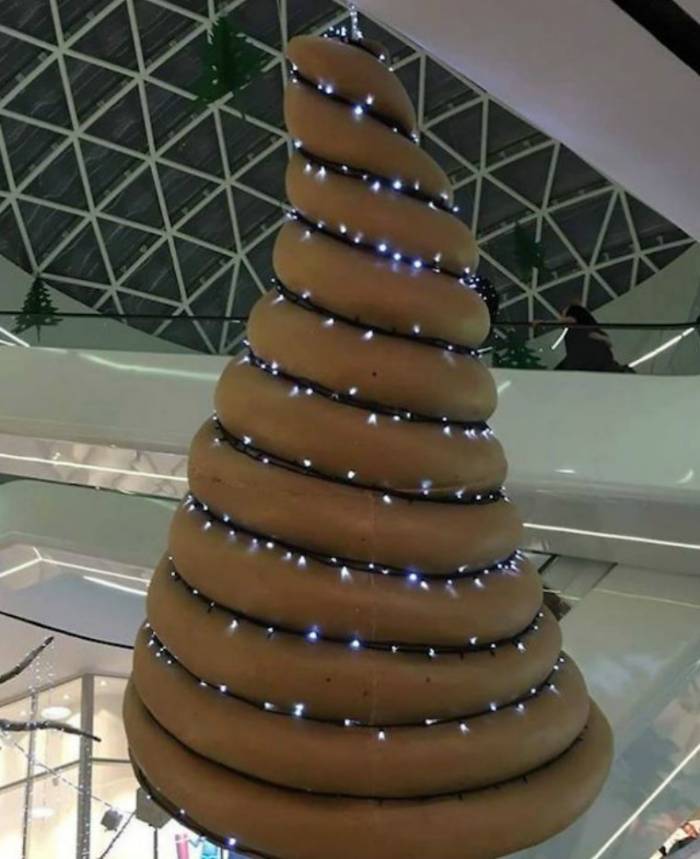 Christmas is the time of year where put up decorative lights on just about everything. However, it is hard to believe that this mall would think it was a good idea to light up something that looks like a 10-foot steaming pile of excrement.
