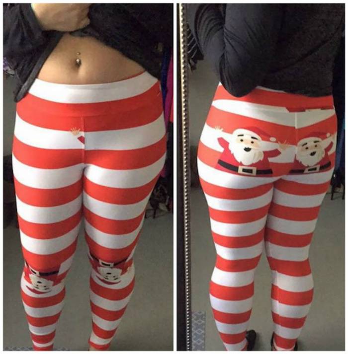 While we have Santa's hand peeping out the front of these leggings, it is clear that he is a butt man above all other things. While these are funny, I will stick with my ugly Christmas sweater instead.