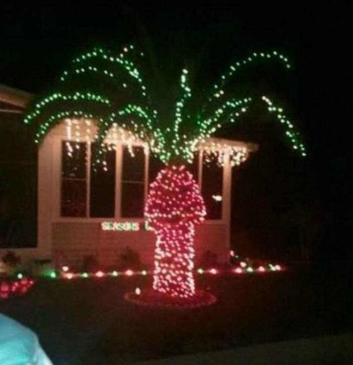 There are some trees that are just not meant to be decorated with Christmas lights. However, looking at this photo, we have to wonder if this was deliberate or not.