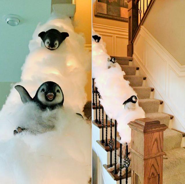 Ditch The Garland And Turn Your Staircase Into A Snowy Penguin Slide
