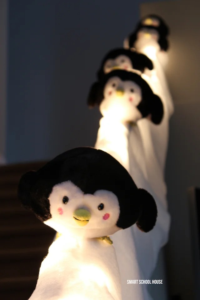 Nothing compares to the sight of a group of penguins sliding down the stairs to open their Christmas presents.