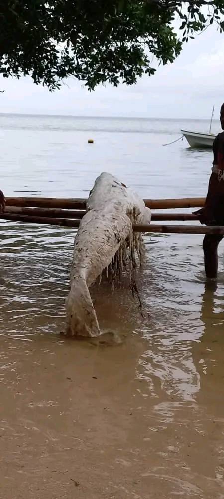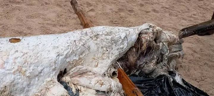 The pale mermaid-shaped 'globster' left the experts and locals stunned where experts claim that it could be anything from a dolphin to a shark.
