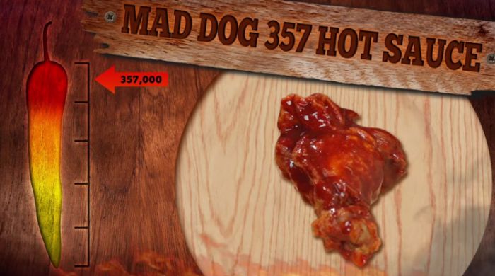 Mad Dog 357 Hot Sauce is the final wing. And it's twice as spicy as the last one with a 357,000 ranking. This is madness.