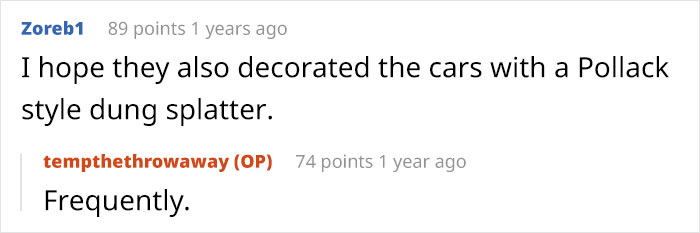 The redditor wrote that "the neighbor liked to park one of his 6 project cars there (illegally) and using it for it's intended purpose was inconvenient to him."