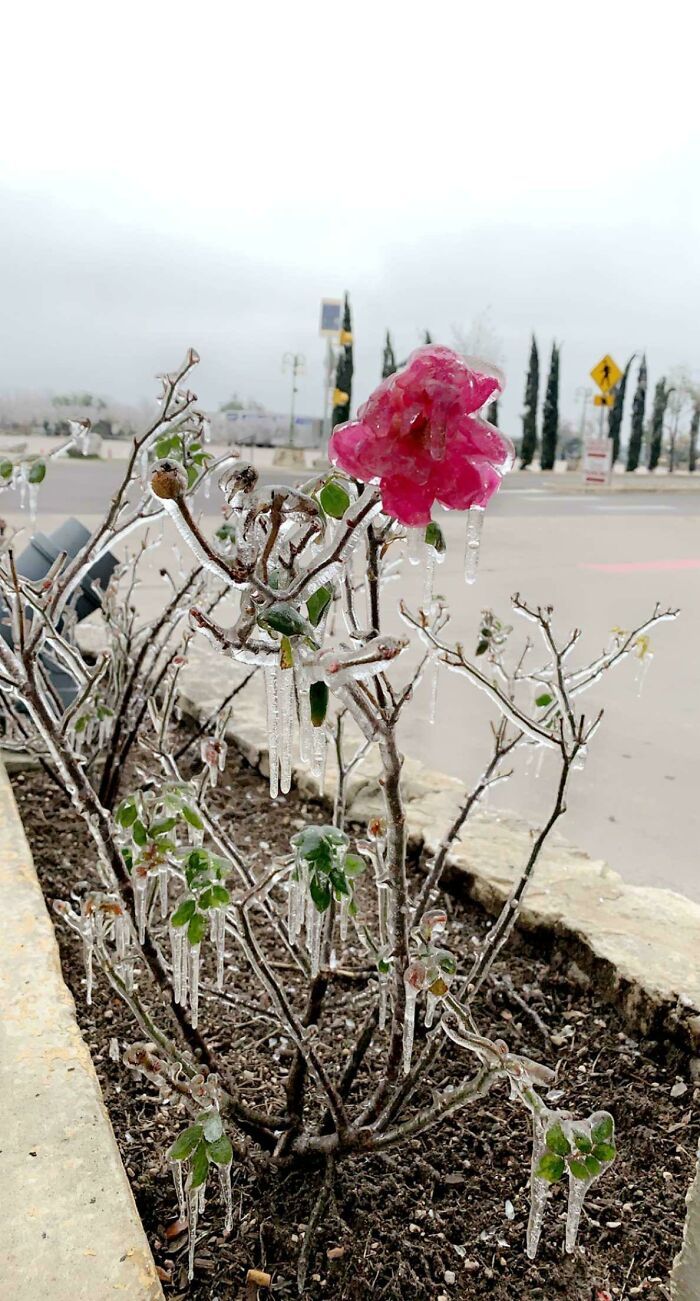 "Frozen Flower I Found In Austin During The Texas Winter Storm"