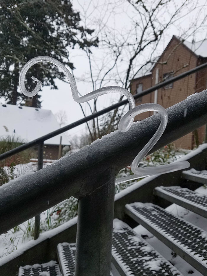 "Look At This Crazy Icicle I Found This Morning (There Is A Small Hole In The Metal Handrail)"