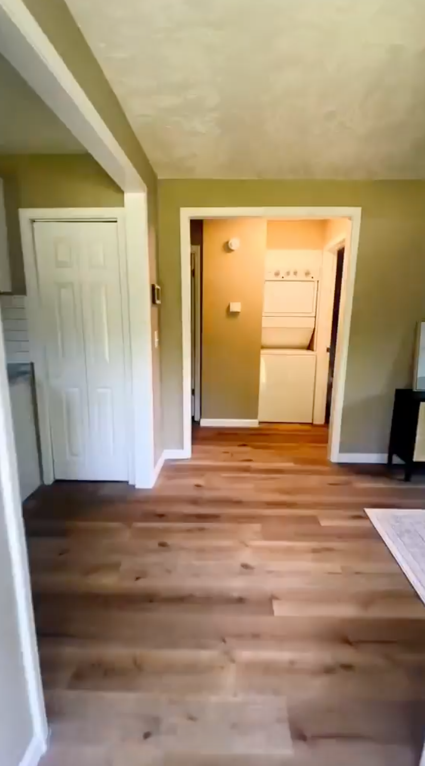 "We fixed the foundation, put in new hardwood floors, completely redid the kitchen with all new appliances, added a washer and dryer in the hallway, new beds [...] and a brand new bathroom."