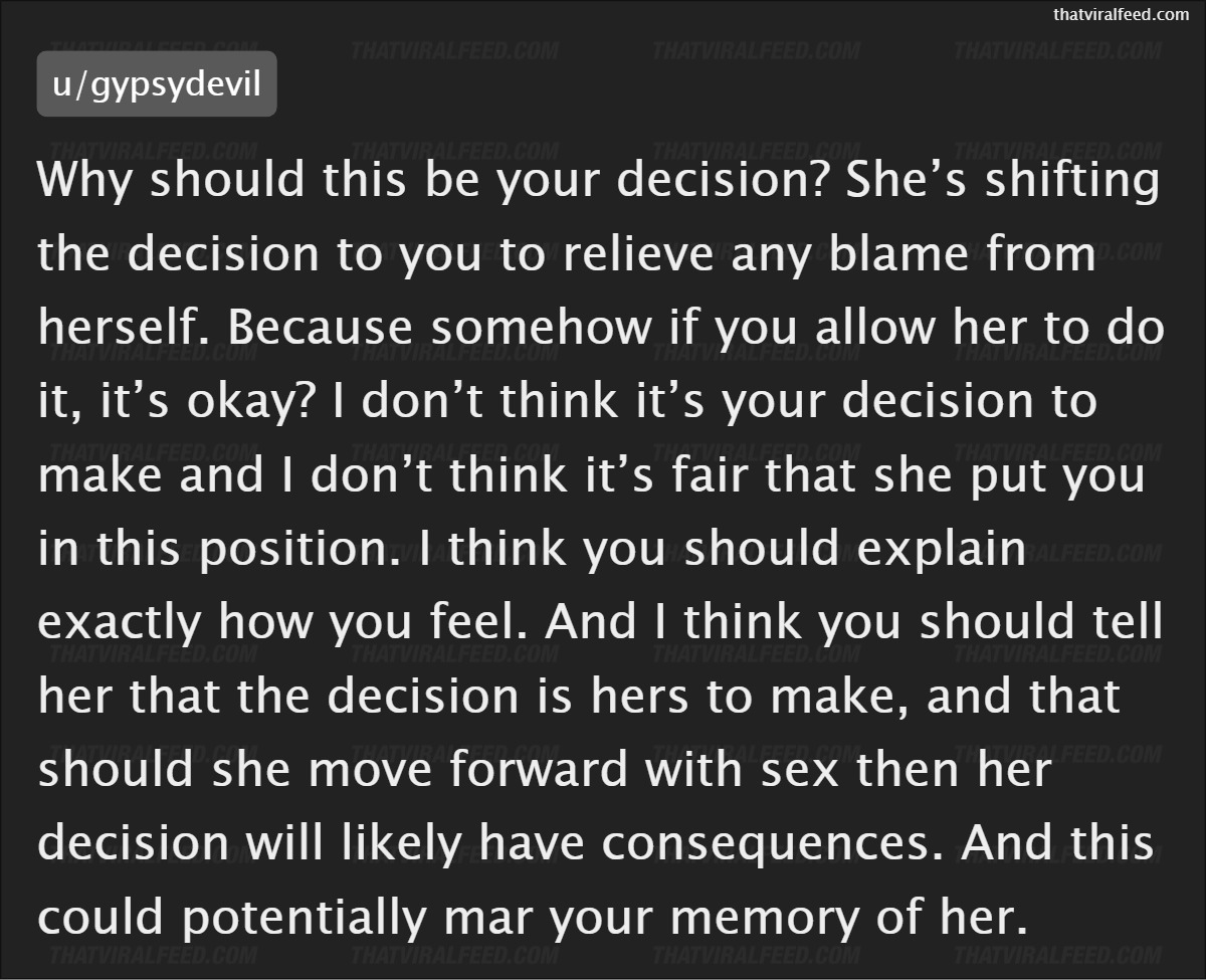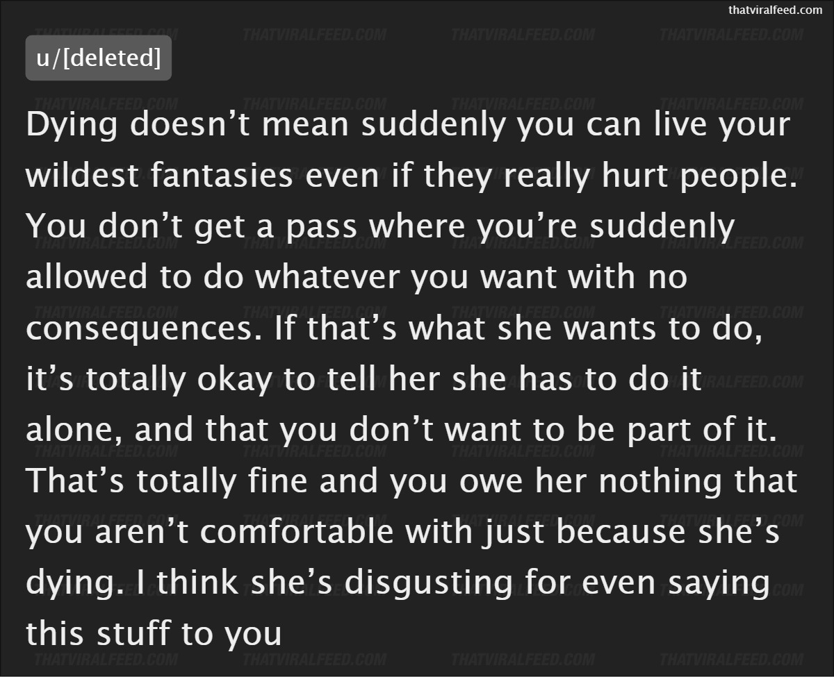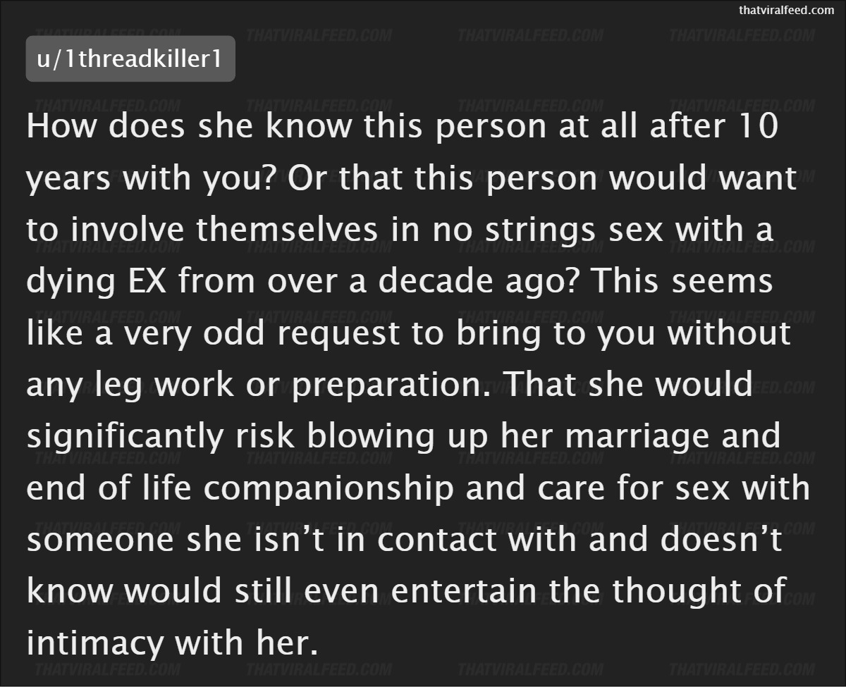 She sat him down and shared her unusual dying wish, which was to 'have sex with a former lover of hers'.