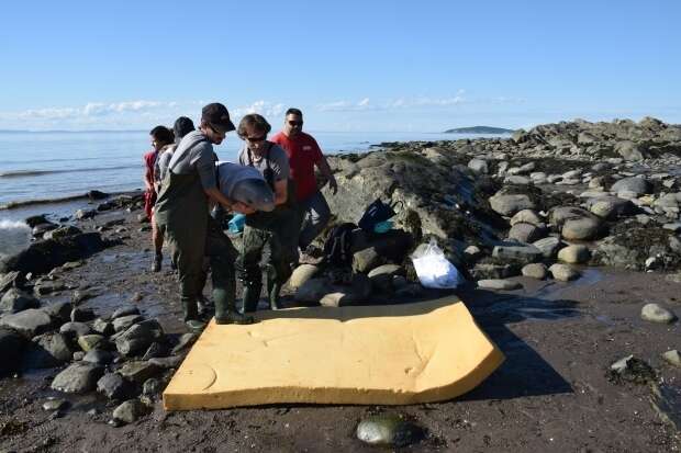 A family vacation on the St. Lawrence River in Canada turned into a rescue mission for these teenage boys when a newborn beluga whale washed ashore.